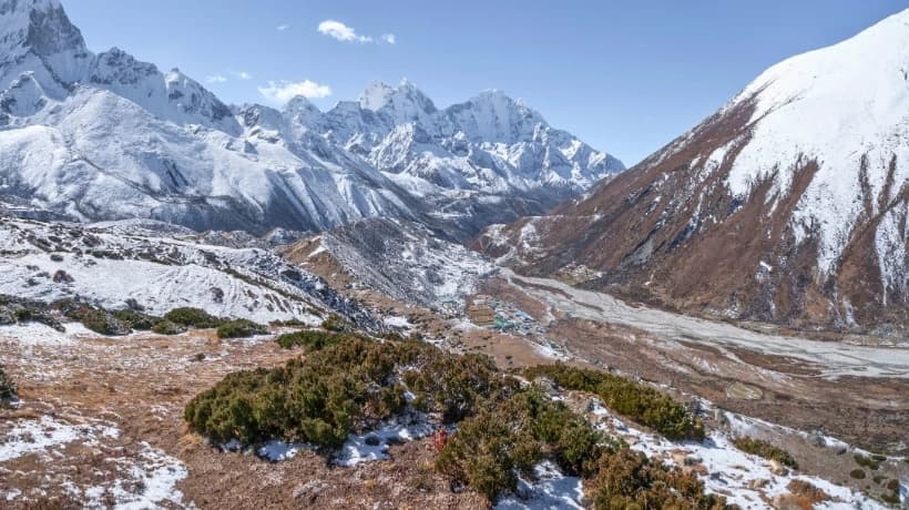 The trial connecting Everest Base Camp runs alongside the Khumbu glacier. When you reach the Khumbu, the view of the mountain will turn more distinct with every step.