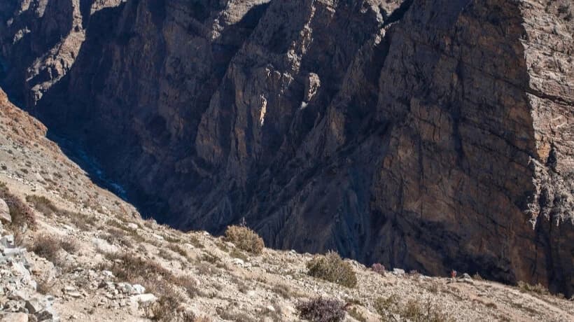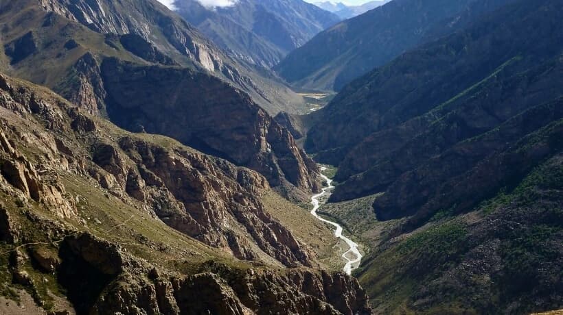 We walk in and out of ravines. We climb towards foot of rock place. The trail descends. We arrive at a stream and from here we again get down crossing a slope. We climb couple of rocky ridges and descend to chortens which marks the end of ridge above Til Chu. From here you get view of Til gompa. We descend down to arrive at a confluence of Takchi chu and Til chu where we set up camp for night stay.