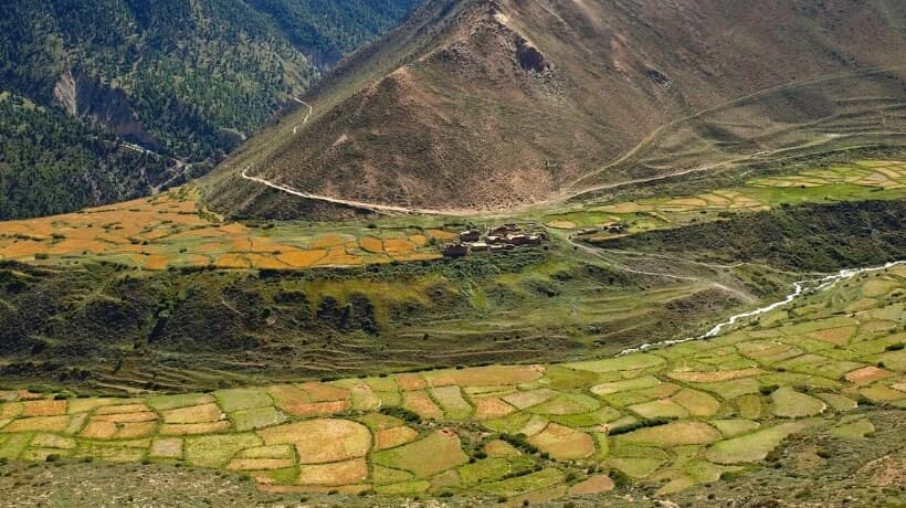 We charter flight to Simikot. It is a scenic flight that shows you snow capped peaks of different mountains. Simikot is head-quarter of Humla. We meet our rest of the crew members here. We follow rocky trail above the town of Simikot. We arrive at Dandaphoya. From here we walk almost in a flat track. We pass walnut and apricot trees to reach Dhara Pokhari where we put off at night.