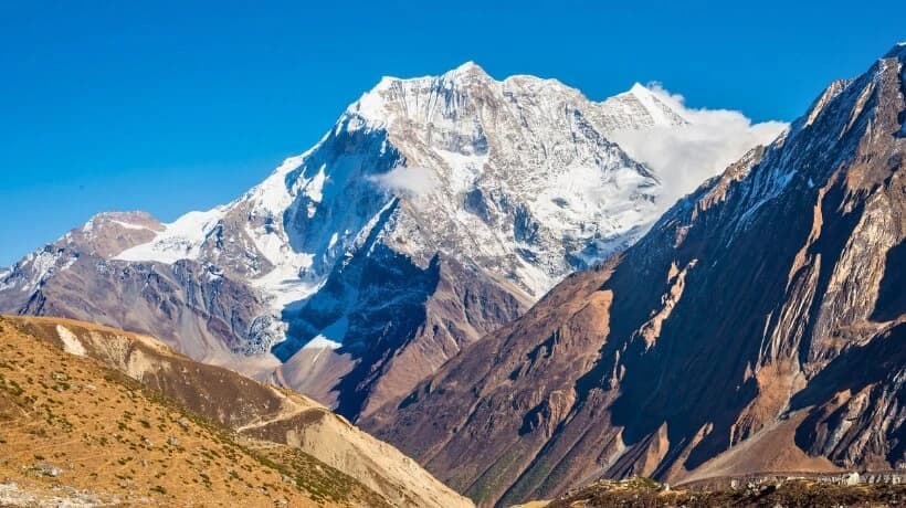 Some mountains visible along the Manaslu Circuit trek route are Boudha Himal, Himlung Himal, Mt. Manaslu, Mt. Kang Gurun, Simnang Himal, Shringi Himal, Naike Peak, Annapurna, etc.