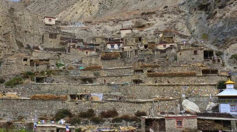 The trail continues from Phu to Nar. It is a steep, vertical climb from Phu to Nar village. On the way, we will trek past many stupas and chortens. The trail takes us to Nar Phedi. From here, we will cross a suspension bridge over the Labse river and ascend to Nar. In this village, we can see women weaving woolen clothes and taking their cattle for grazing.