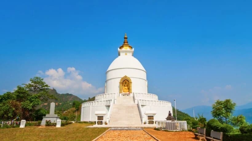 After breakfast and yoga, take a domestic flight to Pokhara. You will arrive in the city of beautiful lakes. Once you step in Pokhara, you'll be awe-inspired by the panoramic view of snow-capped mountains, lakes, Georges of Seti river, caves and green hills. From the heartbreaking story of Davis' fall to the mysterious Bat cave, Mahendra cave and Gupteshwor Mahadev cave, you'll enjoy exploring every moment. After lunch, visit Peace Pagoda and meditate on its premises. Overnight at Pokhara.